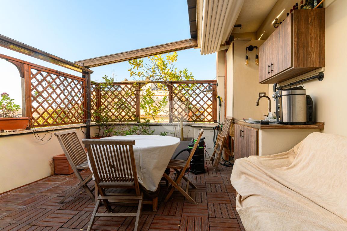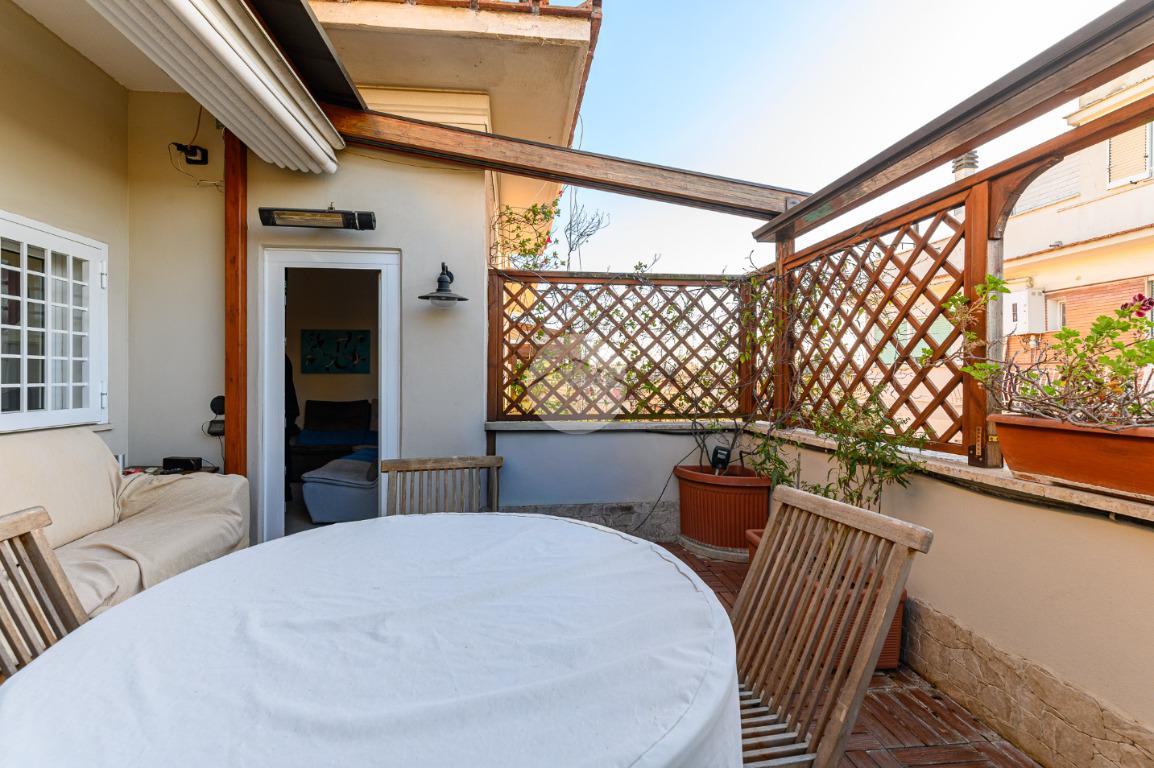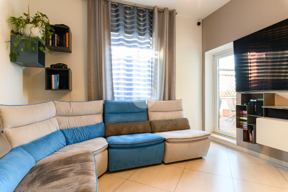 Un attico elegante, accogliente e pronto da vivere, in una posizione riservata ma vicina a tutti i principali servizi e collegamenti della zona Bravetta.